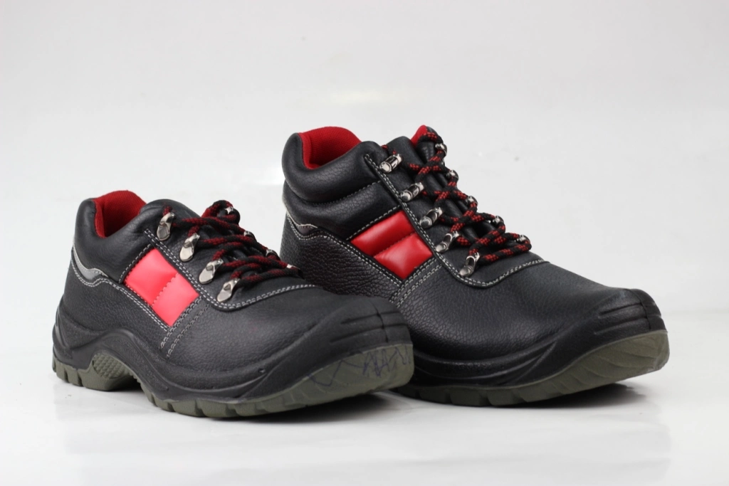 1) Upper: Water Resistant Split embossed leather With PU Fabric Collar and Tongue.